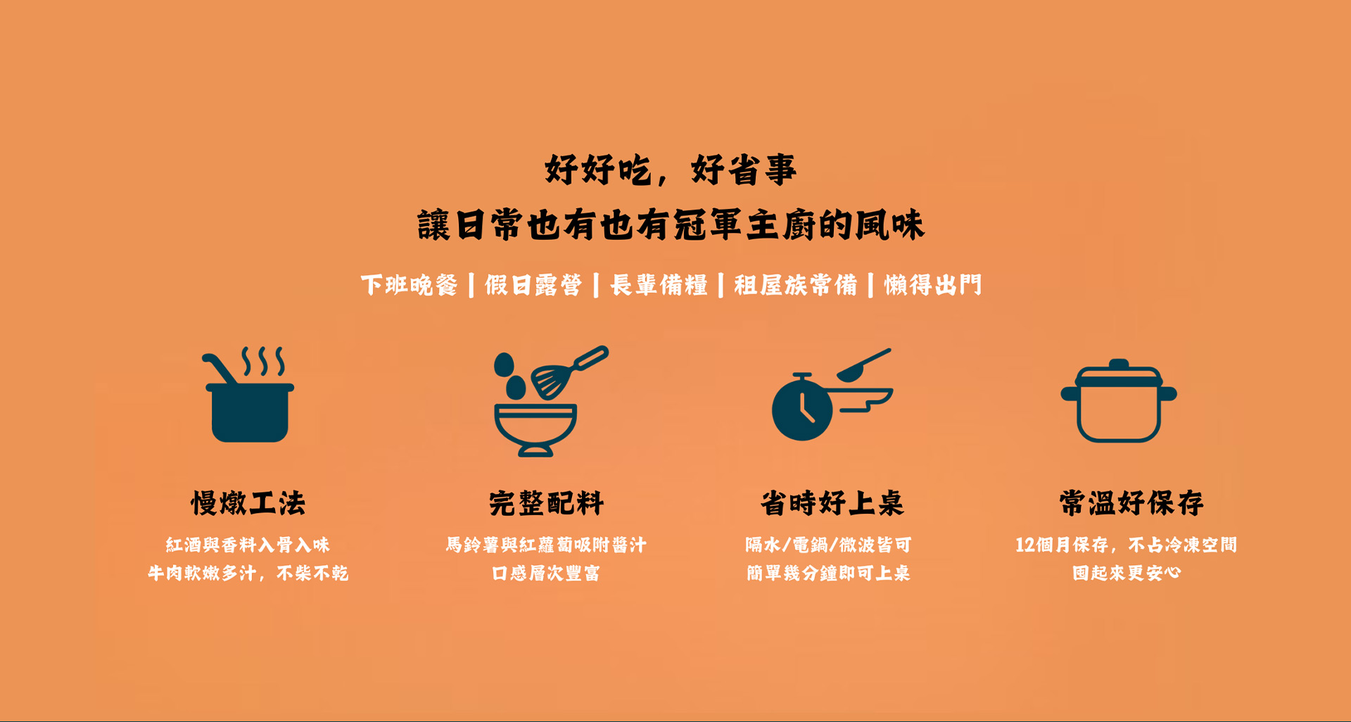 紐西蘭牛肉佐紅酒慢燉,融合馬鈴薯、紅蘿蔔與香料,醇厚濃郁、肉質軟嫩,輕鬆加熱即享異國美味,溫暖每一餐。